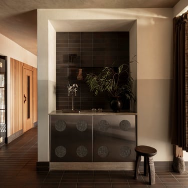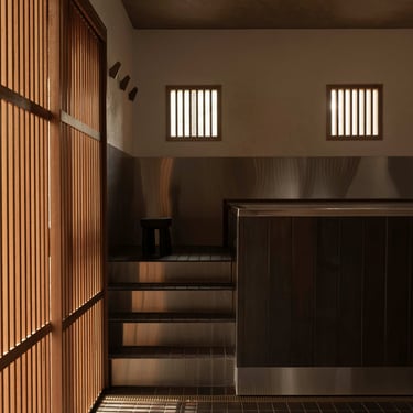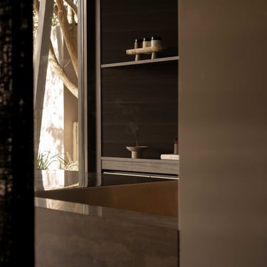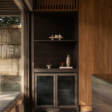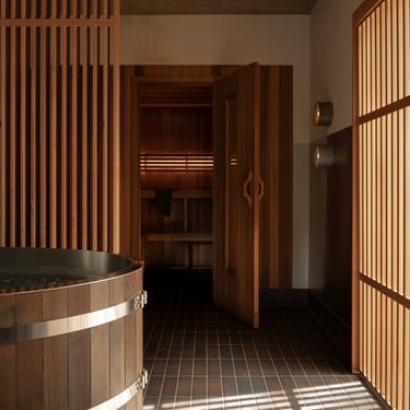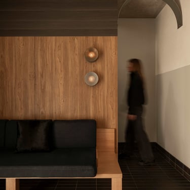 This commercial project featured custom Tasmanian Oak slatted window screens, curved door arches, custom Birch plywood doors, bench seating and vanities. All details are considered to create a space of humble luxury.