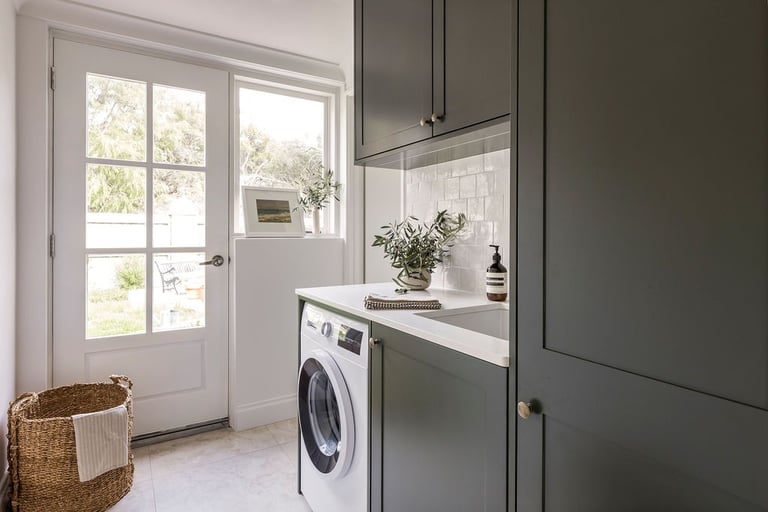 Traditional shaker style laundry with a modern twist. 2pak spray finish.